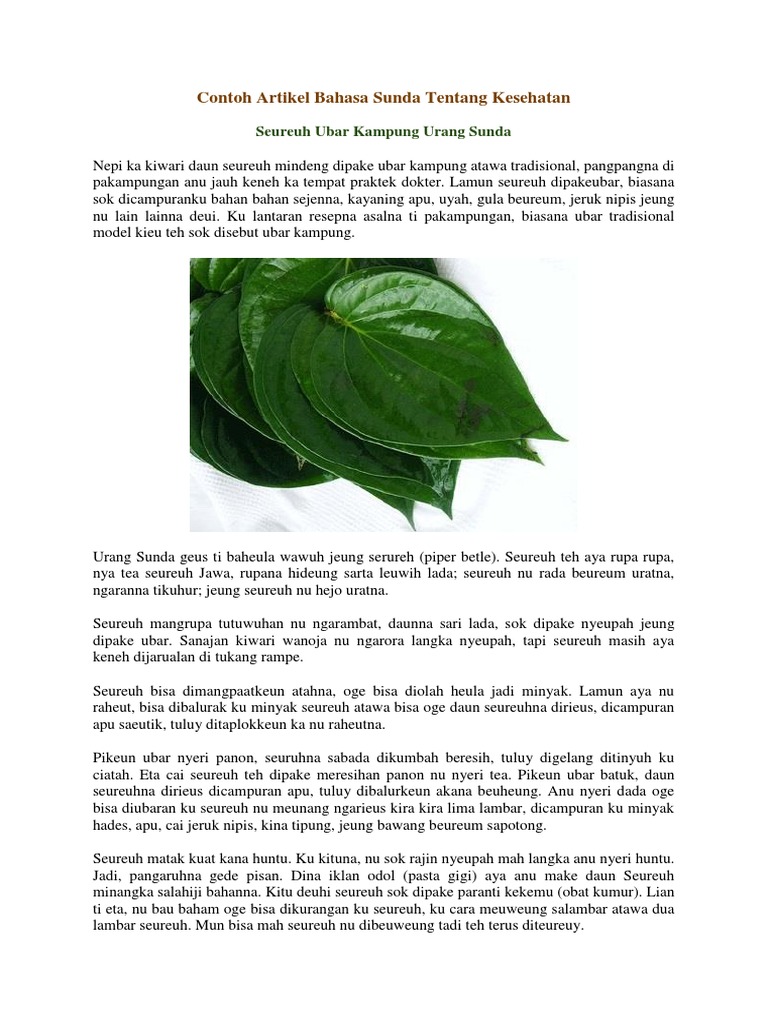 Contoh artikel bahasa sunda tentang kesehatan. Contohnya saja tema yang biasa diangkat adalah pidato bahasa sunda tentang acara 17 agustusan, tentang kebersihan lingkungan, tentang maulid nabi. Isinya kurang lebih sama dengan jenis pidato lainnya, yang dibuat dan disampaikan dalam bahasa indonesia. Artikel sunda tentang 7 manfaat nyeker untuk kesehatan. Contoh artikel bahasa sunda tentang kesehatan kacang burung bahasa sunda wikipedia bahasa indonesia ensiklopedia bebas contoh portofolio pengertian cara …